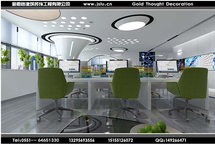 3、辦公室吊頂和燈管的設(shè)計應(yīng)與整體風格無違和感。明快感也是辦公室裝修的基本要求,辦公環(huán)境明快是指辦公環(huán)境的色調(diào)干凈明亮,燈光布置合理,有充足的光線等,這也是辦公室的功能要求所決定的。在裝飾中明快的色調(diào)可給人一種愉快心情,給人一種潔凈之感,同時明快的色調(diào)也可在白天增加室內(nèi)的采光度。